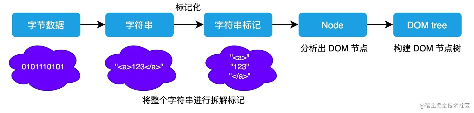 以上就是浏览器从网络中接收到 HTML 文件然后一系列的转换过程。