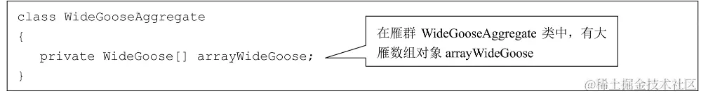 聚合关系(大雁和雁群,是一种弱拥有关系)是一种弱关联关系,用空心菱形和实线箭头;
