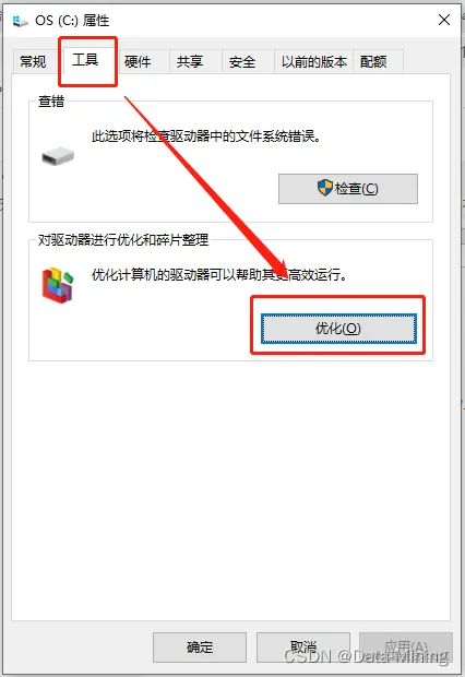 1.1 右键对应的磁盘或者盘符,比如C盘,选择“属性”,然后选择“工具”页签,如下图所示: