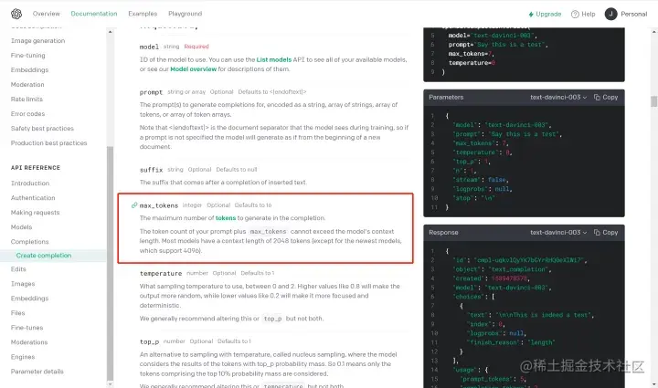 另外,如果你想控制ChatGPT返回内容的详略程度,也可以通过配置max_token参数值来实现,数值越小,回答越精简。如果不填该参数项,则默认为16。