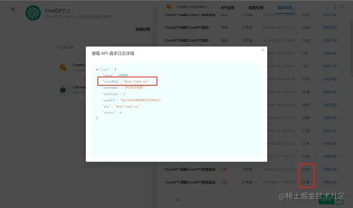 在明道云里,API接口响应时间超过30s时,系统就会超时报错。具体可查看API请求日志(如下图)。