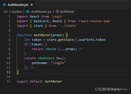 React路由守卫 Avery_xx 2023-02-22 307 阅读1分钟 通过props和Route完成路由的渲染 通过Redirect完成路由的重定向 Redirect中有to方法我们可以在to方法中的search中记录下你在被路由守卫之前所在的url路径 我们可以通过此记录做登录成功后跳转到我们之前所在的页面 直接在路由配置中 需要把你需要守卫的页面嵌套