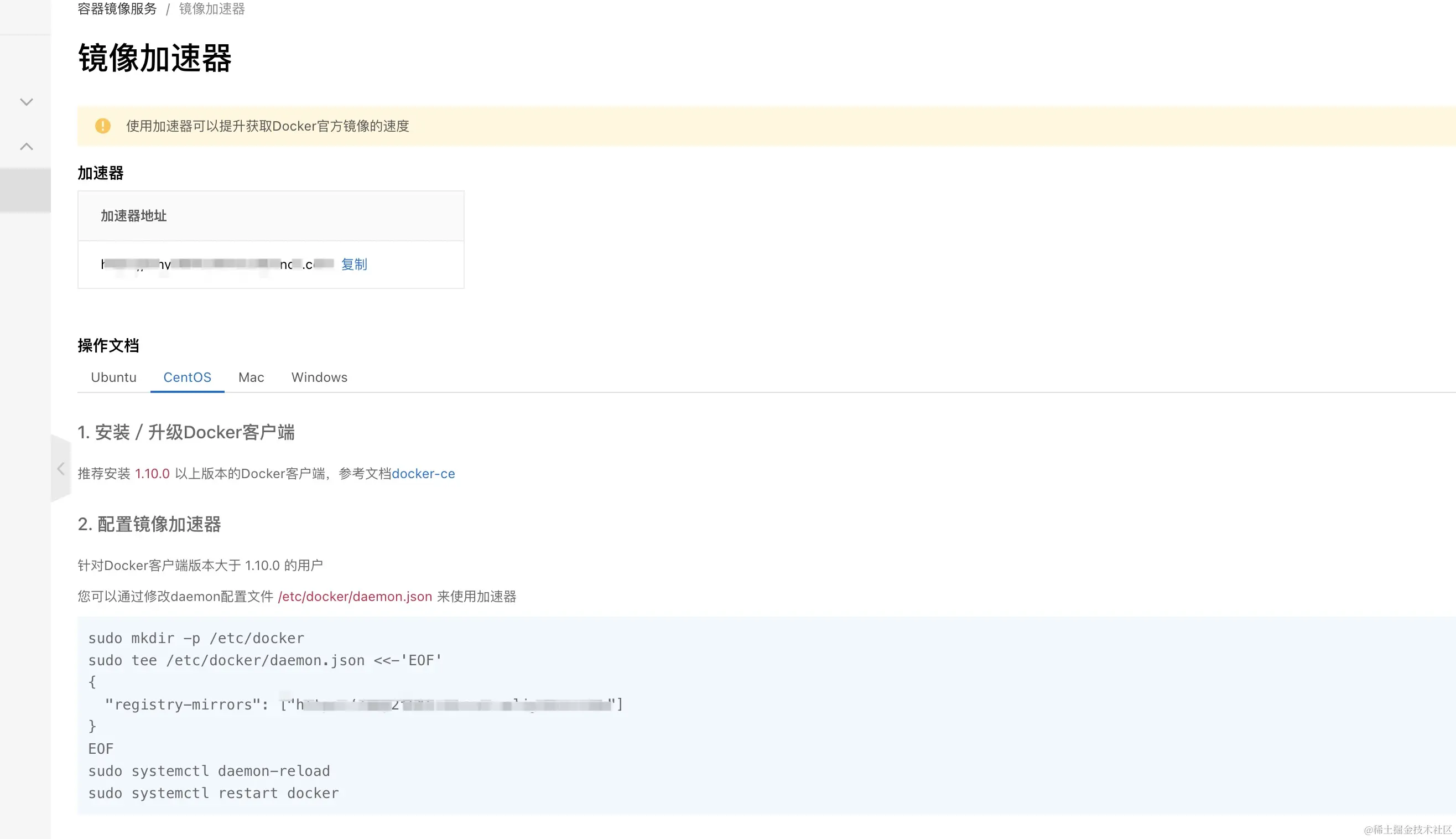 鉴于国内网络问题,后续拉取 Docker 镜像十分缓慢,我们可以需要配置加速器来解决,