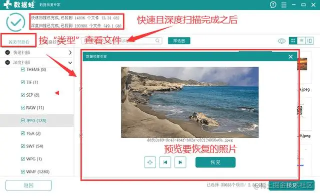 备注:第一次扫描就找到要恢复的照片,就可以不进行深度扫描。