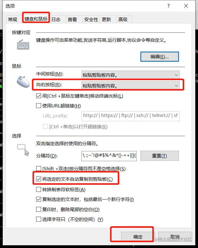 Paste the clipboard contents,并且勾上将选定的文本自动复制到剪贴板,最后点击确定即可。