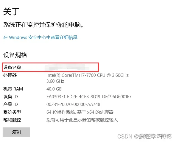 在弹出的窗口中,我们同样可以查看电脑A的“设备名称”(我这里打了马赛克)。