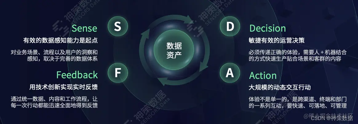 基于 SDAF 数据闭环方法论,神策数据提供的融媒行业版产品与方案主要包括五个层面: