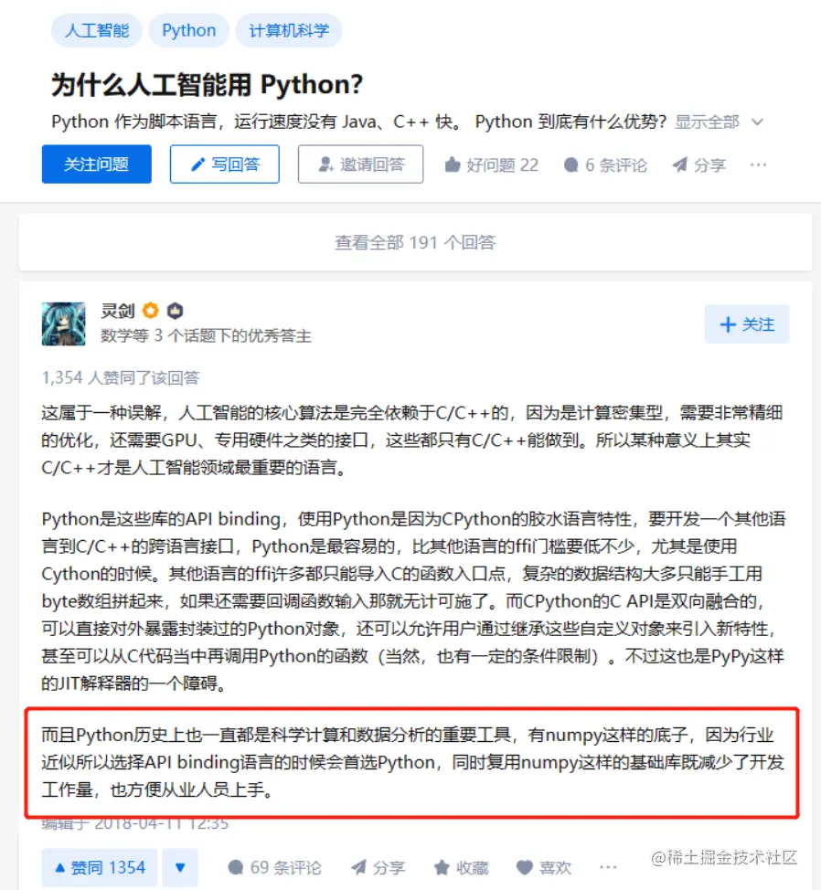 由于我本身不是搞人工智能相关研发的,所以我的观点可能不具备说服力,于是我在某乎上,搜索 Python 人工智能 关键字,得到一个高赞答案,如下图所示: 感兴趣了解全部答案的可以 戳这里 !