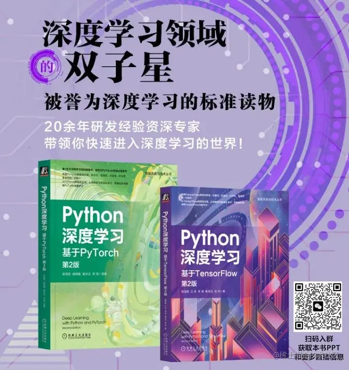同时,本书还配置了丰富的PPT文档,更好地辅助读者朋友了解和实践书中的例程。另外,它还与 《Python深度学习:基于TensorFlow 第2版》 誉为 深度学习领域的双子星,阵容不可谓不强大。