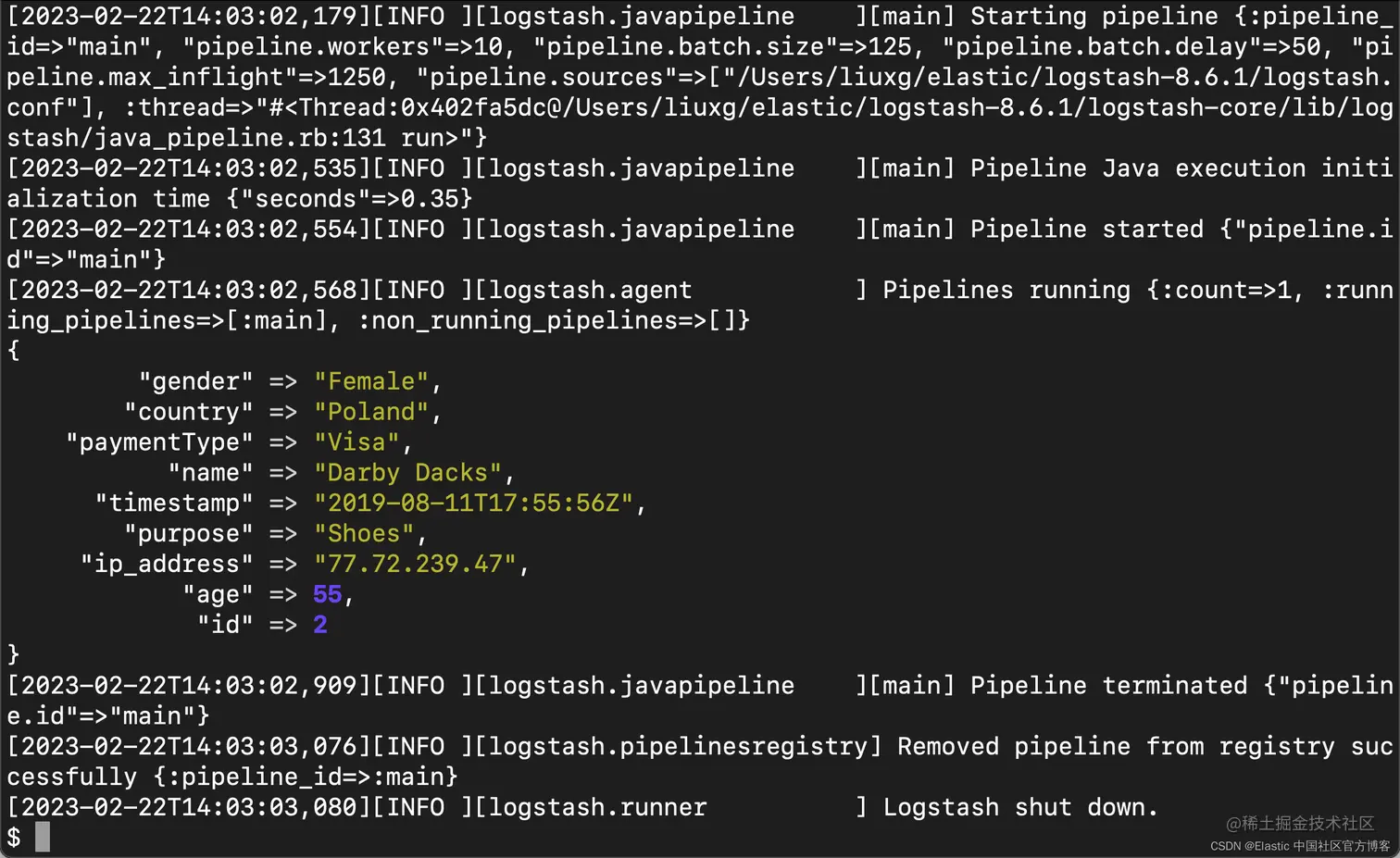 我们接下来运行 Logstash 的 pipeline: