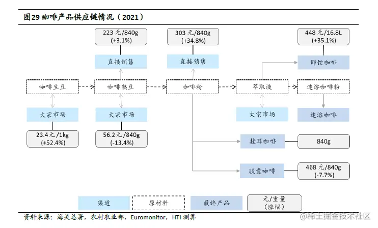 ①供应链:据星纳赫资本数据,2020年现制茶饮、现磨咖啡供应链规模各341/152亿元,预计2025年各增至1020/375亿元。庞大中上游规模为下游龙头品牌整合产业链,对外赋能创造条件,从而为万店品牌诞生提供足够空间。