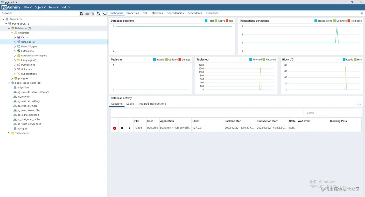 在安装目录C:\Program Files\PostgreSQL\12\bin下cmd,新建名为onlyoffice的数据库。初始化onlyoffice用户,设置密码为onlyoffice,且分配对应的操作权限。
