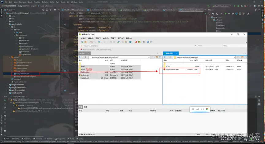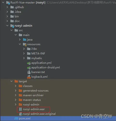 在ruoyi-admin目录下找到打包出来的war包
