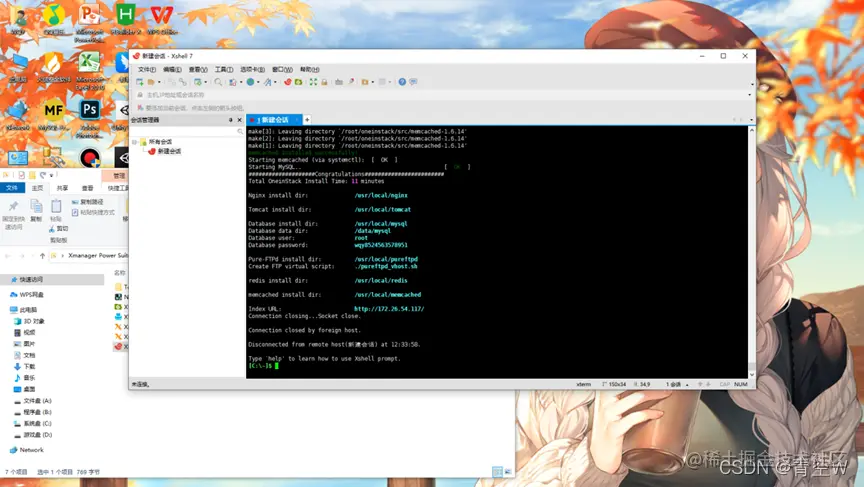 这里我们默认你已经准备好了远程连接后端的工具,以及准备好的linux服务器,在这里我们使用的是Xshell跟Xftp来控制我们的服务器