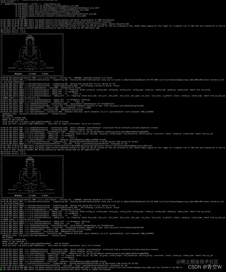 最后,为了证明你不是伸手党,我提出一个问题看你是否能回答,为什么有些小伙伴部署后端后在tomcat刚启动时会看到如图所示两个佛祖?欢迎评论区讨论。最后再打个广告,关注公众号程序猿青空,不定期分享各种优秀文章、学习资源、学习课程,能在未来(因为现在还没啥东西)享受更多福利。