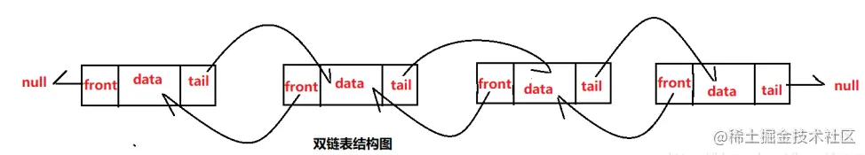 - 双向链表:除了包含单链表的部分,还增加的pre前一个节点的指针