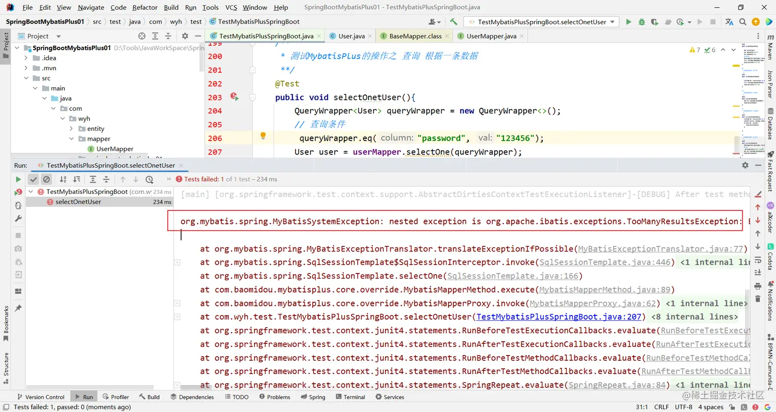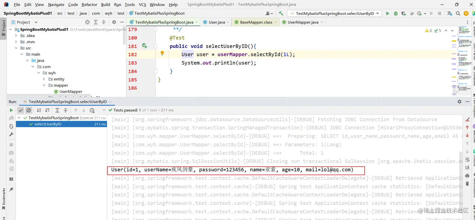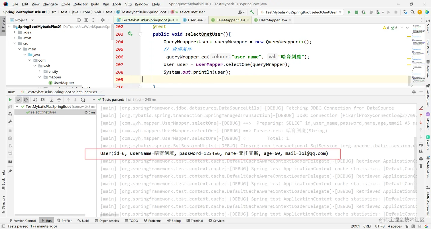 * 测试MybatisPlus的操作之 查询 根据一条数据