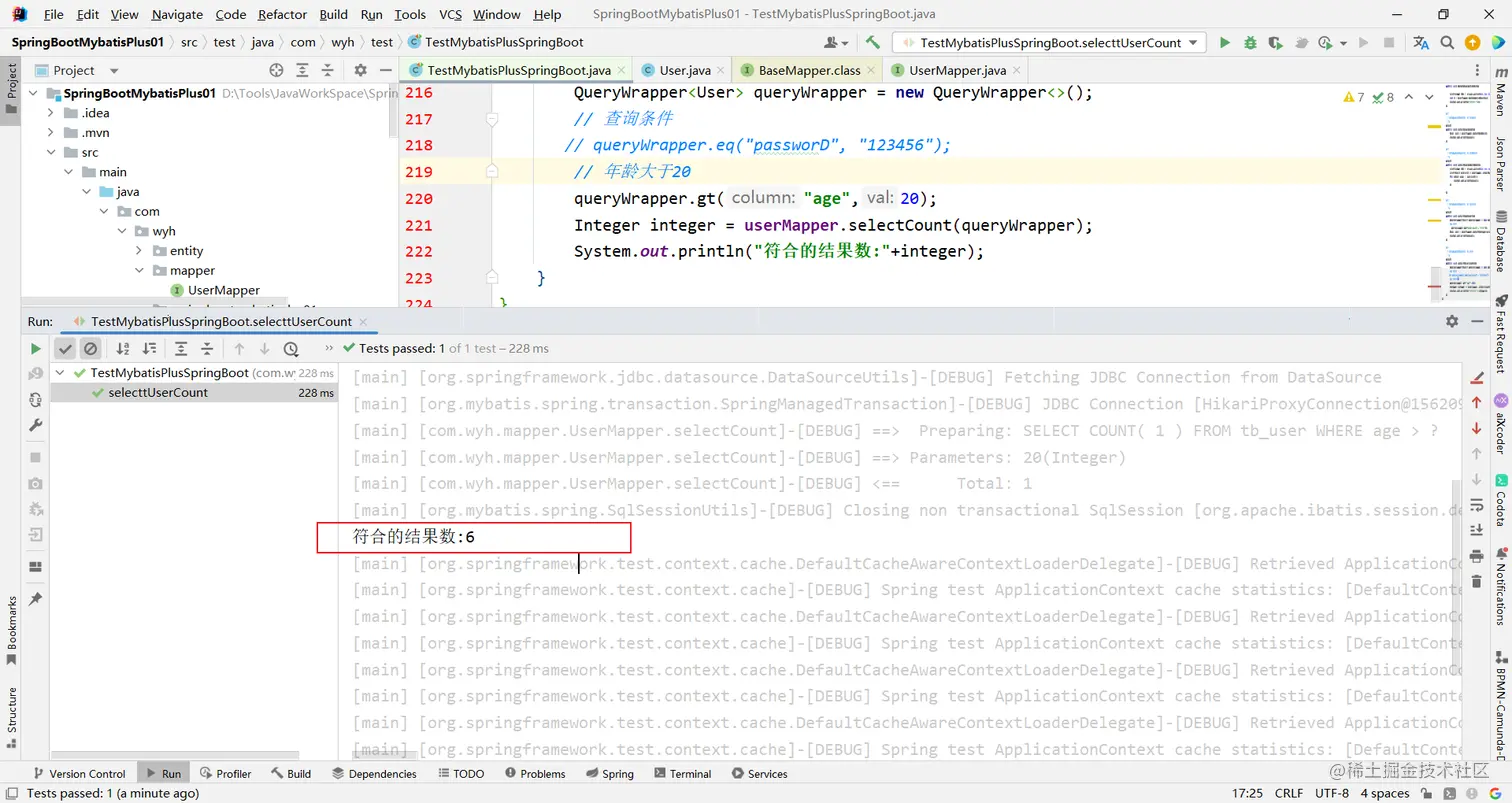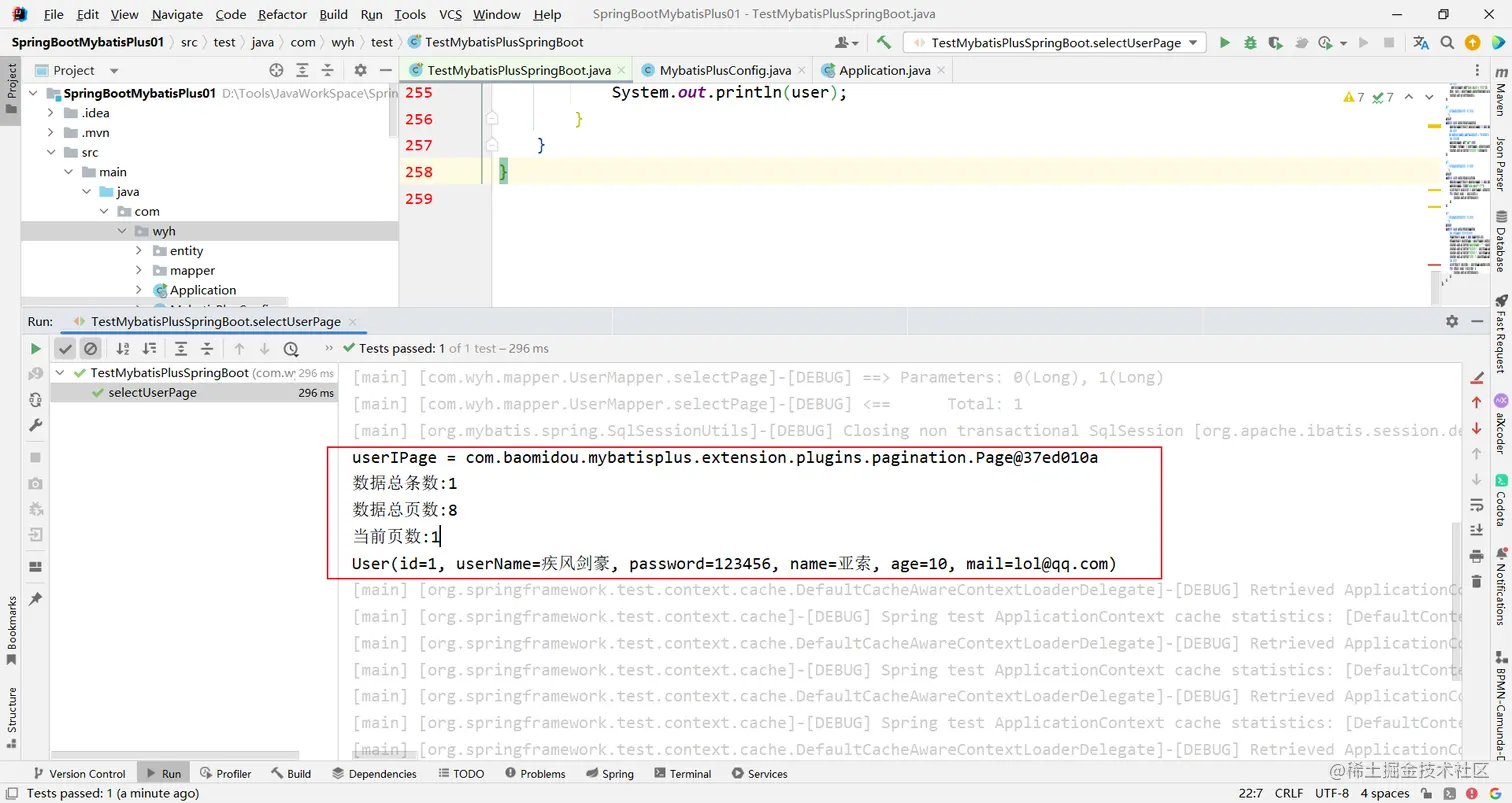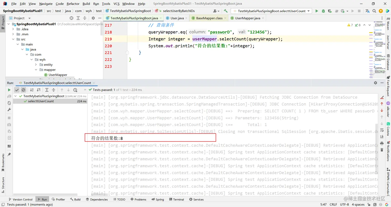 * 测试MybatisPlus的操作之 查询 根据一条数据