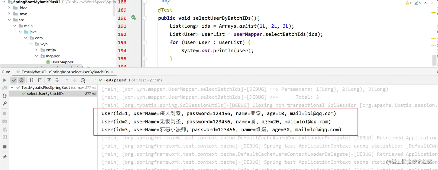 * 测试MybatisPlus的操作之 查询 根据ID批量查询