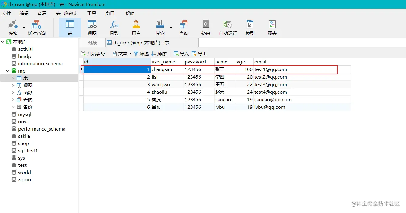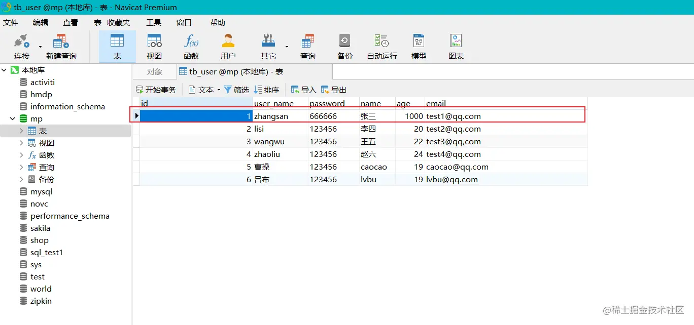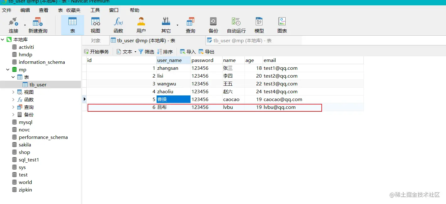 同理 新增也是一样的 这里我们就直接设置mail的值 还是可以正常插入对应的email的值