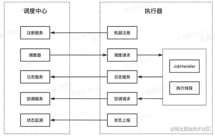 - 调度器发出调度请求,执行中心进行任务执行,中间可能会回传日志文件,也可能发出回调请求