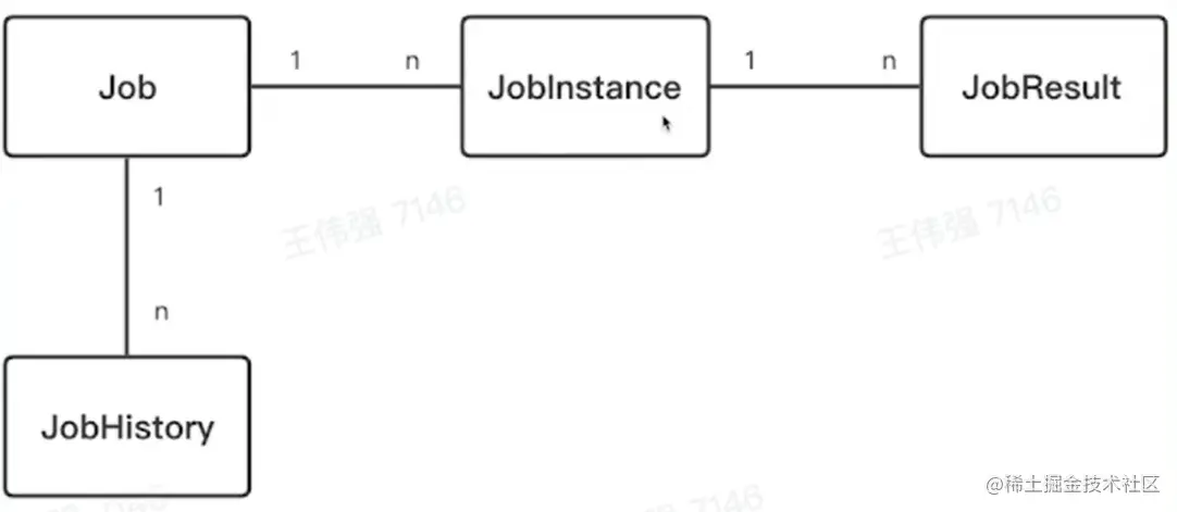 任务实例和任务结果之间也是 1:n 的关系,因为每个任务实例执行后,都可能失败,失败后就需要重新执行
