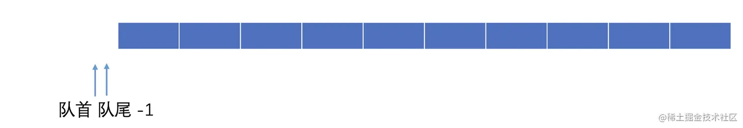 想要实现队列也是很简单的,也可以通过两种线性表来实现,我们使用顺序表实现队列,假设一开始的时候队列中有0个元素,队首和队尾一般都初始都是-1这个位置: