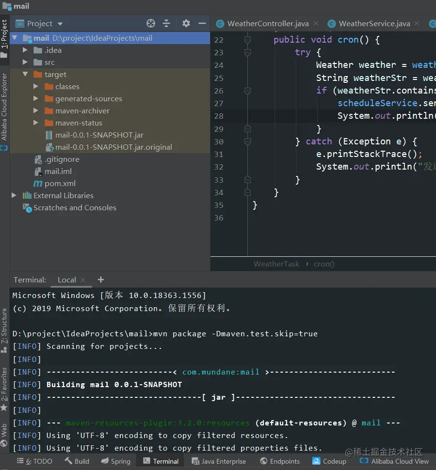 用mvn package -Dmaven.test.skip=true 生成一下jar包
