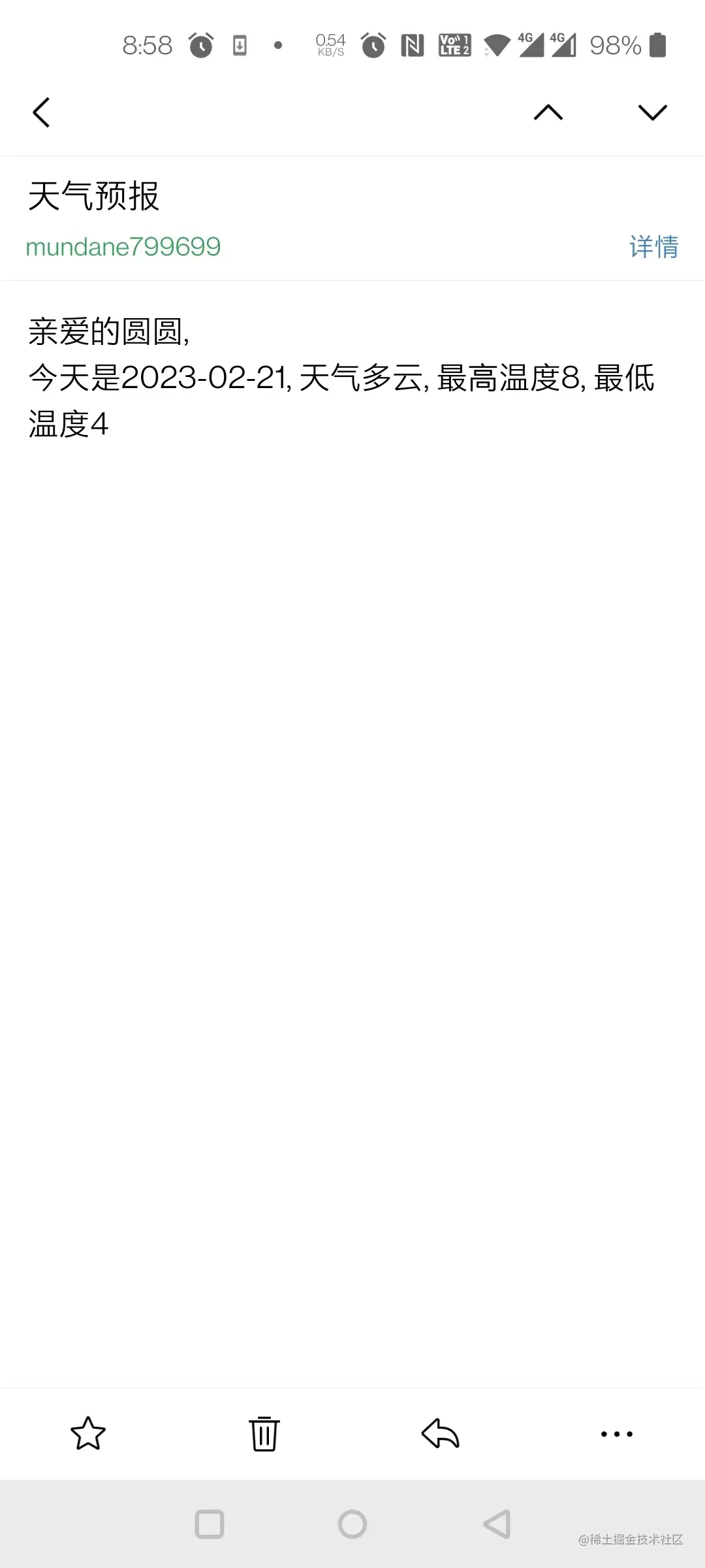 每天早上7点跑定时任务,调用天气预报api,如果当天是雨雪天气,就发邮件提醒