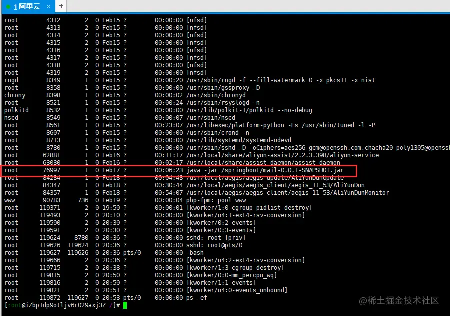 远程连接服务器,用ps -ef命令看一下进程是否起来