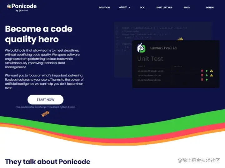 Ponicode是一个智能简单的单元测试助手,可以帮助你创建没有错误和故障且代码面向未来的工业级软件。适用于JavaScript、TypeScript、Python 和 Java。已被CircleCI收购。