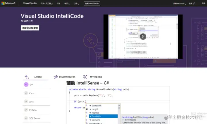 支持语言:支持C#、C++、Java、Python、SQL Server、TypeScript/JavaScript、XAML