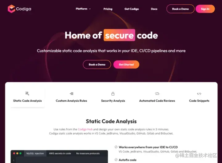 它是一种主要关注安全性并允许实时自动代码更正的产品。从本质上讲,它是一种保证您的代码尽可能高效、安全和干净的技术。