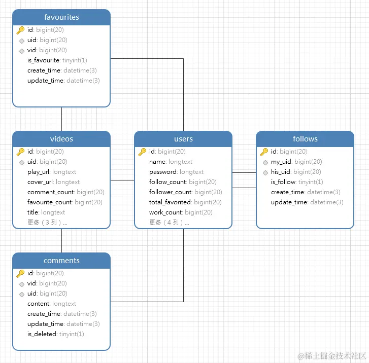 - comment.go 评论实体类与Dao实现,包含若干数据库操作