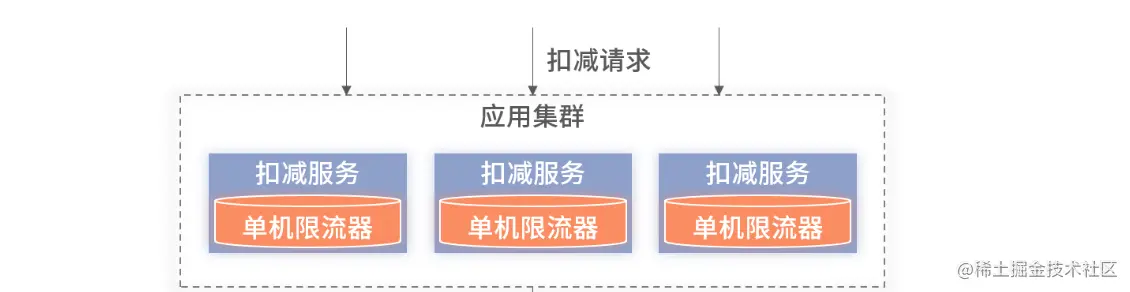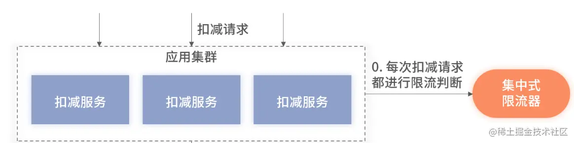 集中式是指在一个单独的限流应用存储一个总的限流阈值。需要限流的应用每次请求到来时都需要远程访问限流应用,来判断当前是否达到限流值。