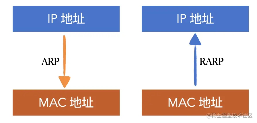 ARP 协议全称地址解析协议,用来将 IP 地址解析出 MAC 地址,还有一个与之相对的协议 RARP,全称叫做逆地址解析协议,用来将 MAC 地址解析出 IP 地址。