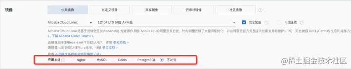 2023年1月12日 阿里云 ECS 的售卖页有了一些新的变化,在用户选择倚天+ Alinux3 新建实例时,多了一个新的选项“应用加速”。这个功能是 阿里云 ECS 基于 KeenTune 提供典型云场景的开机即用的全栈调优解决方案,业务平均性能提升达到 20%+,为客户提供远高于 x86 实例的性价比。