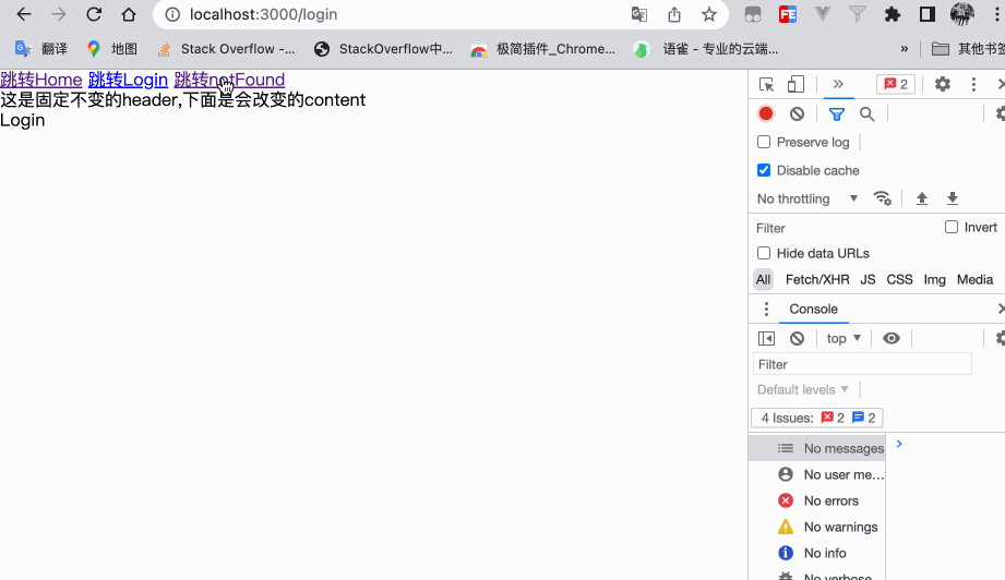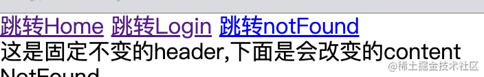 跳转notFound时,我们设置了replace属性,也就是说我们/abc路径会把路由栈里当前路由替换掉。对应这里的操作是:我们依次点击跳转 Home --> 跳转Login --> 跳转notFound ; 路由栈里的变化是 / --> /login --> /abc 但由于我们设置跳转notFound的replace属性为true,所以实际上路由栈的变化是 / --> /login (当点击跳转notFound时 /login 被替换成了 /abc )