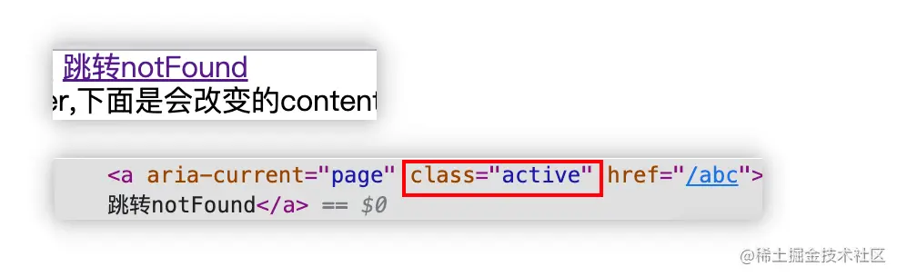 介绍完了Link组件,接下来我们就来介绍下NavLink,其实router6里的NavLink就是Link组件的样式增强版,它与Link的用法基本,只不过就是多了几个属性可以让我们进行设置样式,并且当前选中的NavLink组件上会多出一个active类名: