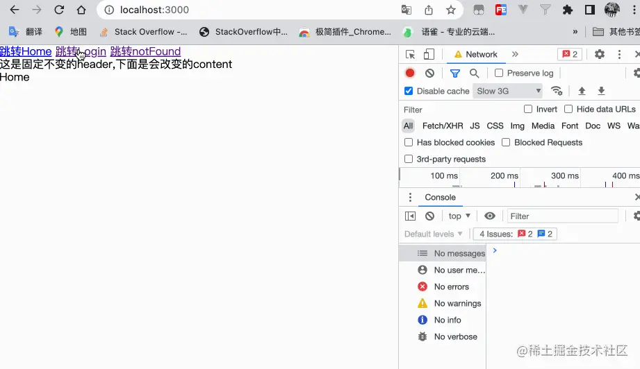 我们看到log只在初始化打印了一次,切换路由时没有进行rerender。