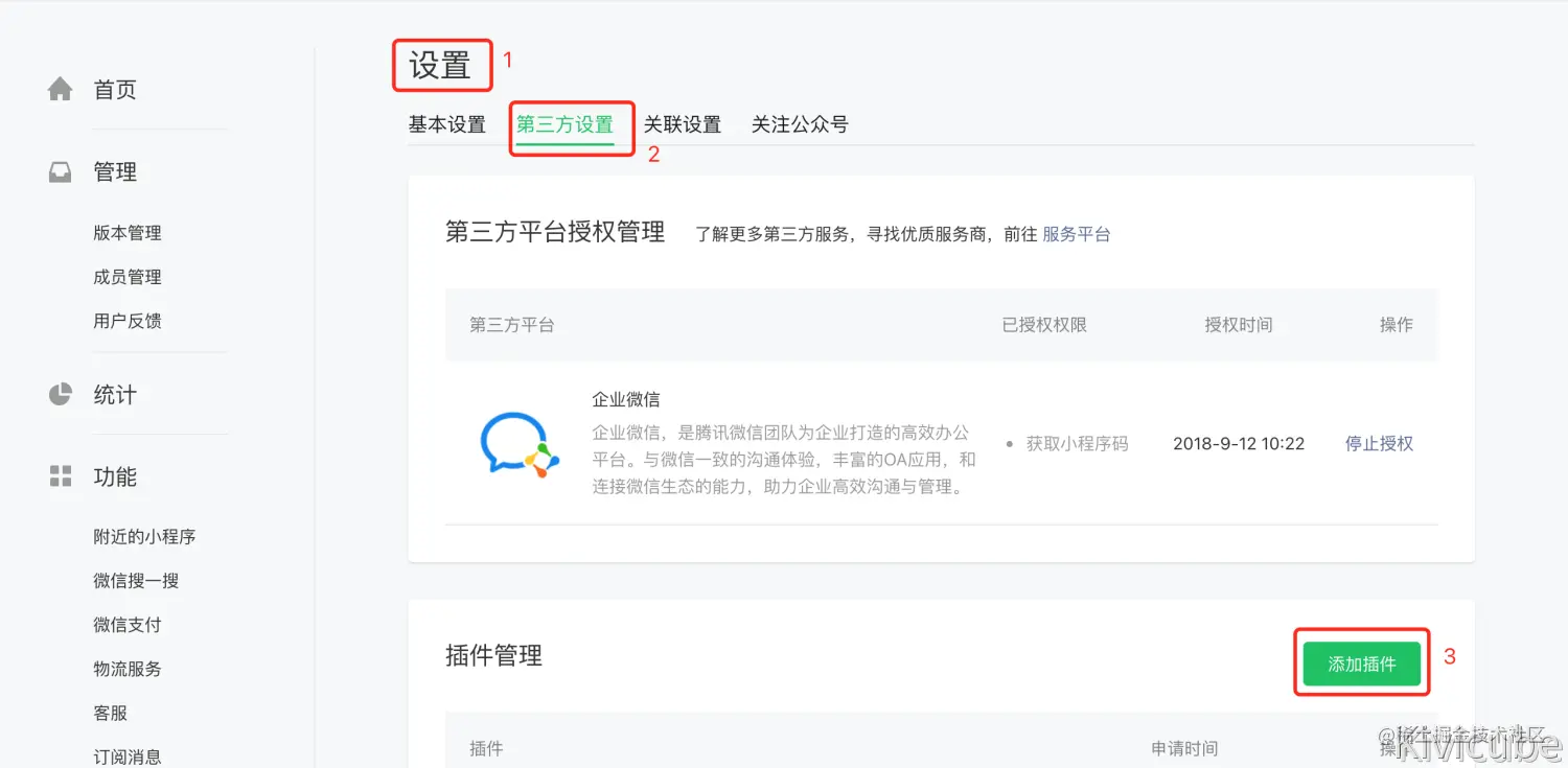 【设置】-【第三方设置】-【添加插件】