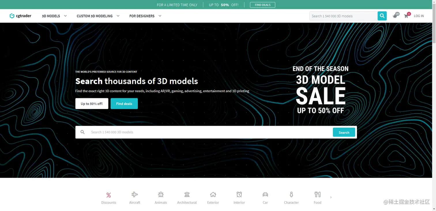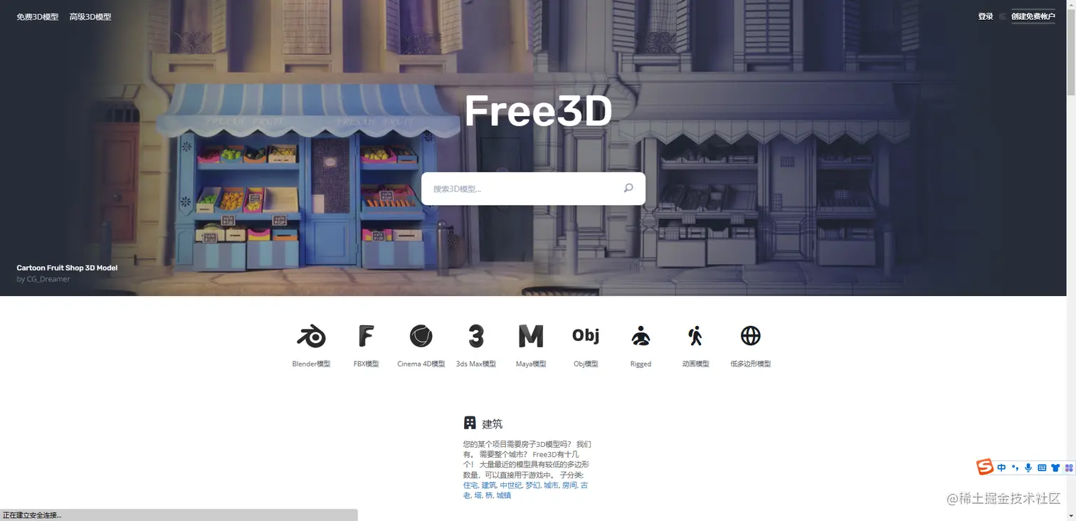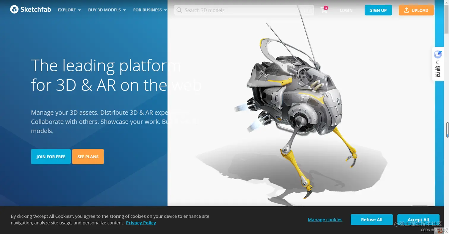 我们可以去Sketchfab官网下载3D模型,Sketchfab号称是世界上最大的3D内容库平台,平台上有超300w个模型,有很多免费的模型。