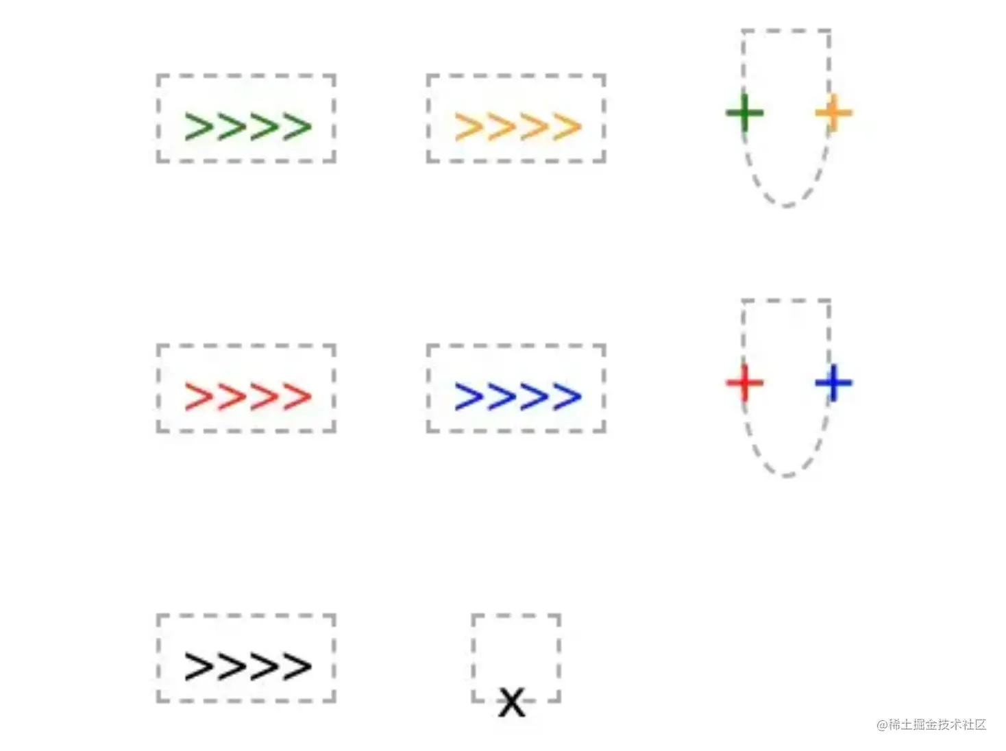 比较器有两种,分别是红蓝比较器和黄绿比较器。比较器的作用是,当机器人通过它时,判断序列头部的球颜色,若颜色是比较器允许的颜色,则机器人朝对应的加号方向前进,并将该序列头部的这个球取出,否则,机器人沿着弧形箭头方向前进,且序列保持不变。