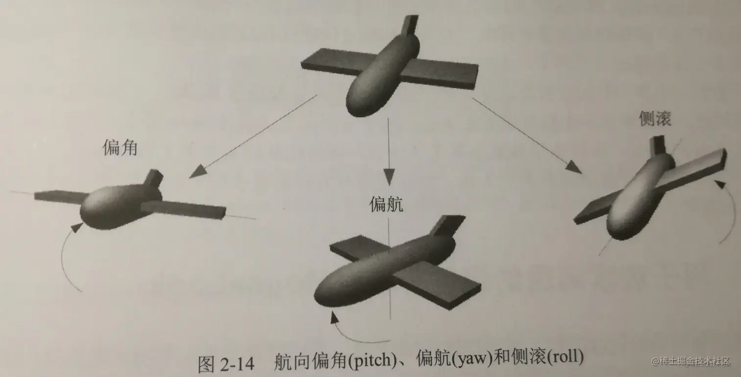 - 旋转变换:俯仰角、偏航角、滚转角
