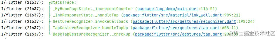 ///由于Flutter 上的StackTrack上的不太一样,Android返回的是list flutter返回的是StackTrack 所以需要手动切割 再处理