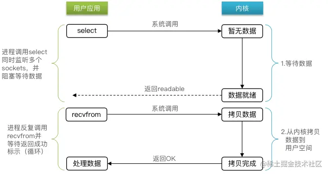 - select和poll只会通知用户进程有FD就绪,但不确定具体是哪个FD,需要用户进程逐个遍历FD来确认