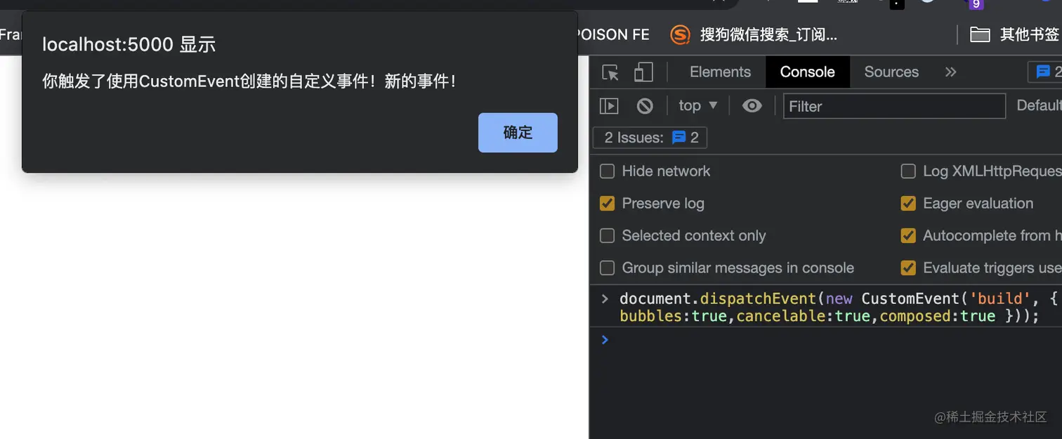 alert("你触发了使用CustomEvent创建的自定义事件!" + newEvent.name);