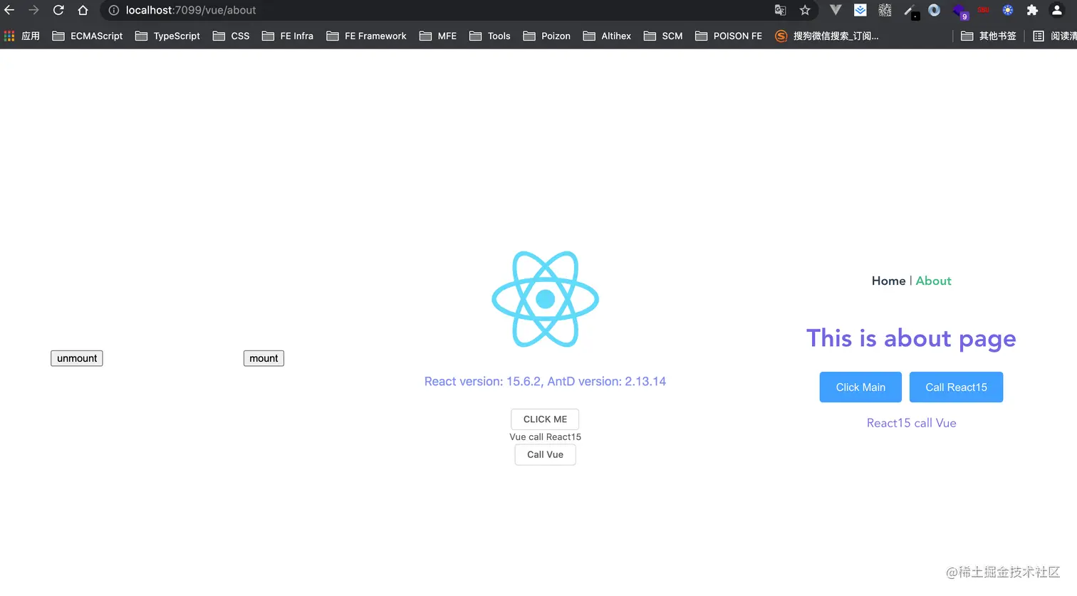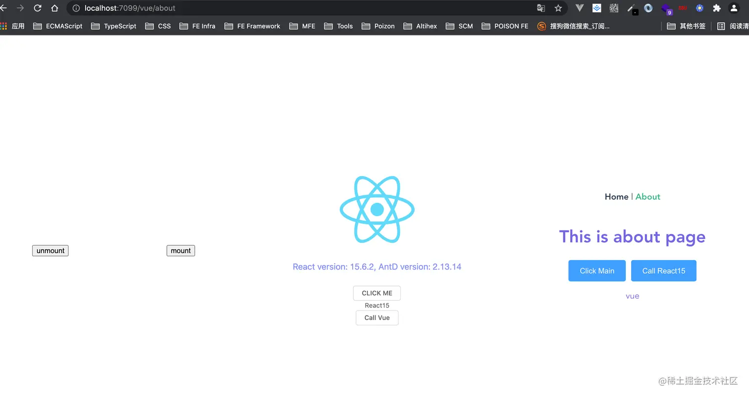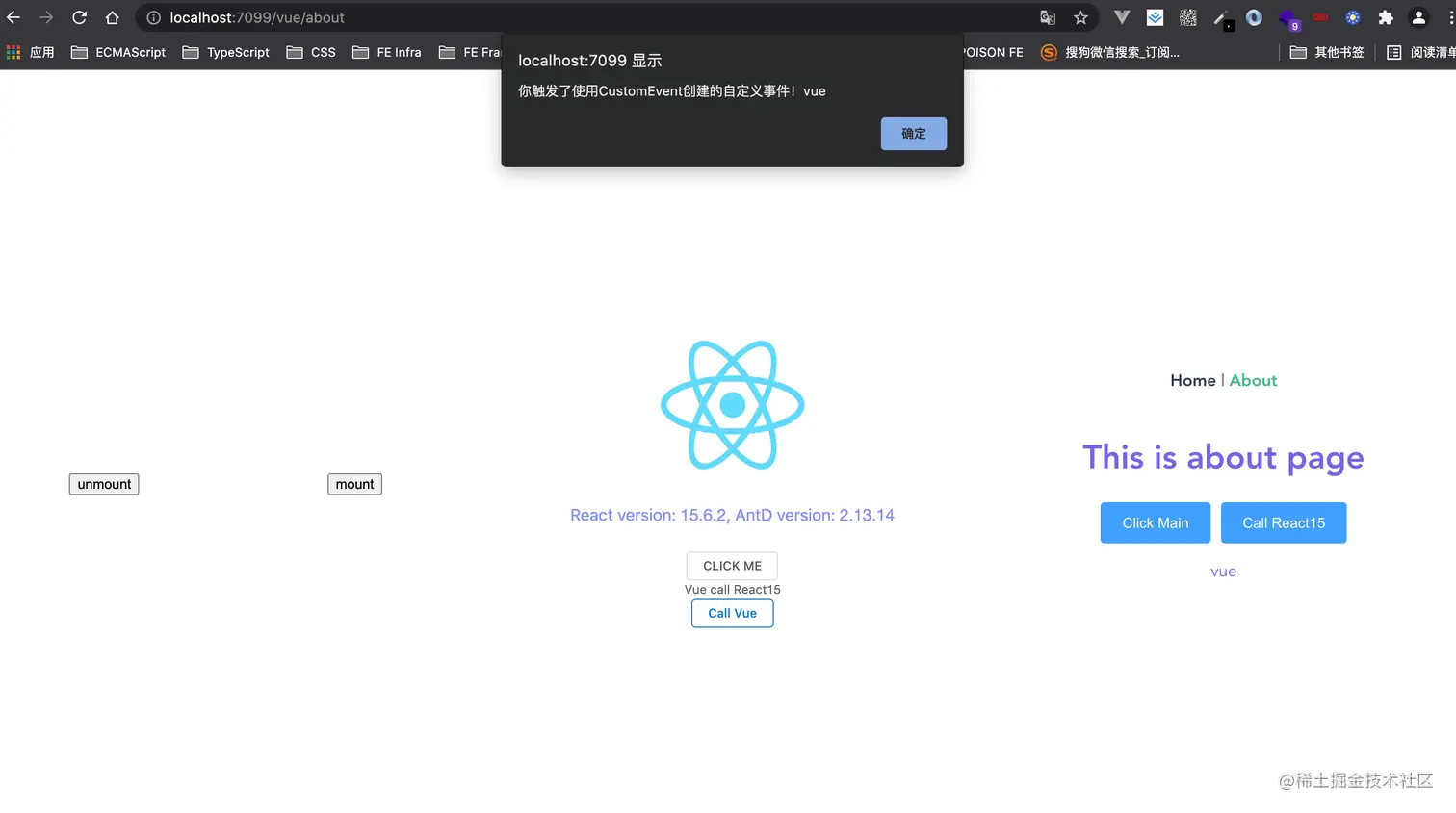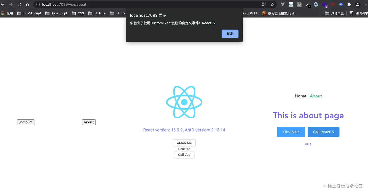 <el-button type="primary" @click="onCall">Call React15</el-button>