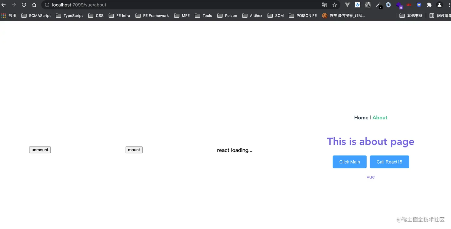 loadMicroApp({ name: 'vue', entry: '//localhost:7101', container: '#vue' });