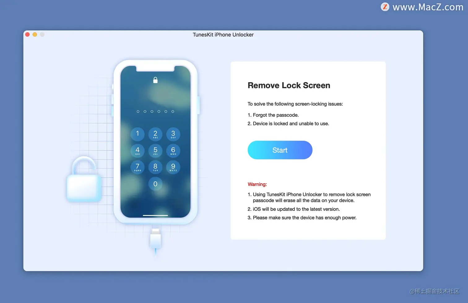 苹果手机解锁工具哪款好用呢?TunesKit iPhone Unlocker mac激活版就是最好的选择,无论您使用哪种类型的密码,例如 4 位或 6 位密码、自定义数字密码、自定义字母数字密码、Touch ID 或 Face ID,TunesKit iPhone Unlocker 都可以轻松帮助您一键绕过它们。
